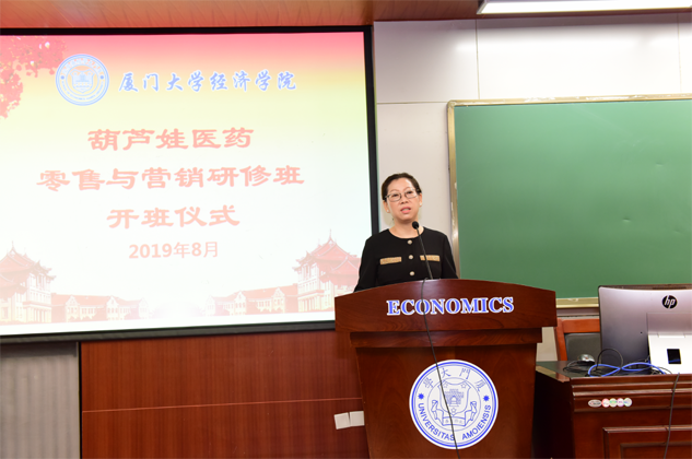 8月31日,PG医药零售与营销研修班开班仪式在厦门大学经济学院举行,为期8天的“厦大PG班”正式拉开帷幕。厦门大学经济学院继续教育中心主任廖景峰先生与PG药业集团董事长刘景萍女士分别在开班仪式上致辞,中国医药物资协会研究院执行院长代航先生担任本次研修班班主任并主持开班仪式。